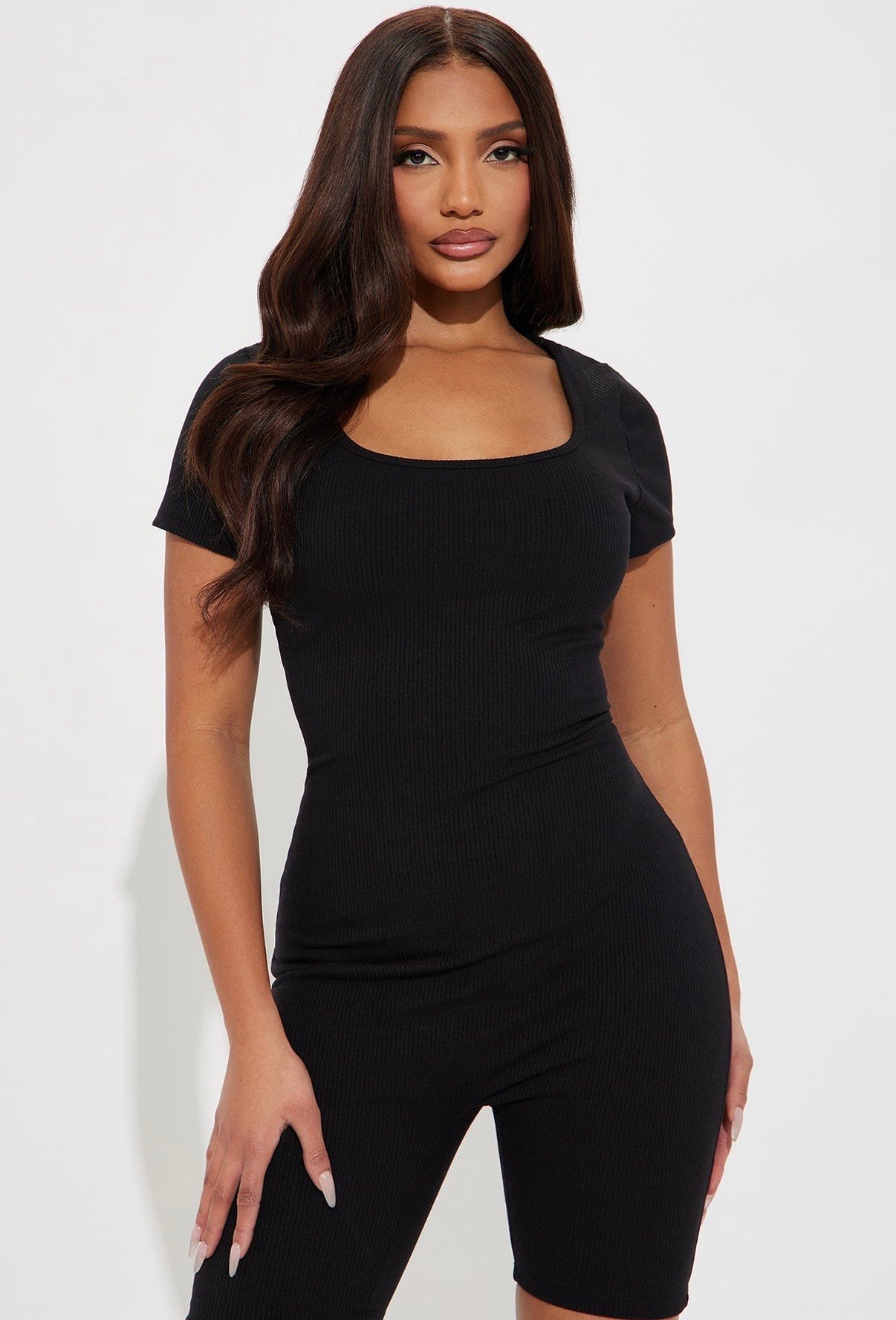 Great Fit! Super Stretchy. Sleek, sculpting, and effortlessly chic—this stretch-fit jumpsuit hugs your curves in all the right places. Designed with a soft, flexible fabric and a flattering square neckline, it delivers all-day comfort with a polished, body-contouring look. Perfect for dressing up or keeping it casual, this is your go-to one-piece for a confident, streamlined style.